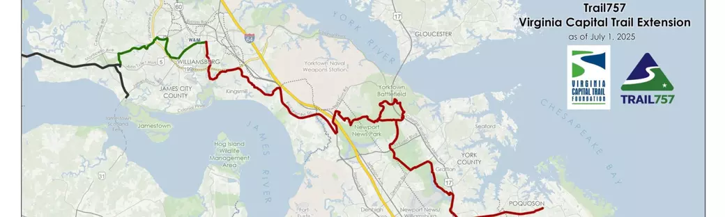 The City of Williamsburg just announced a 7.5-mile extension of the Virginia Capital Trail. The new route will run from Jamestown High School down to South England Street, right by downtown, and will connect directly with the Trail 757 network.